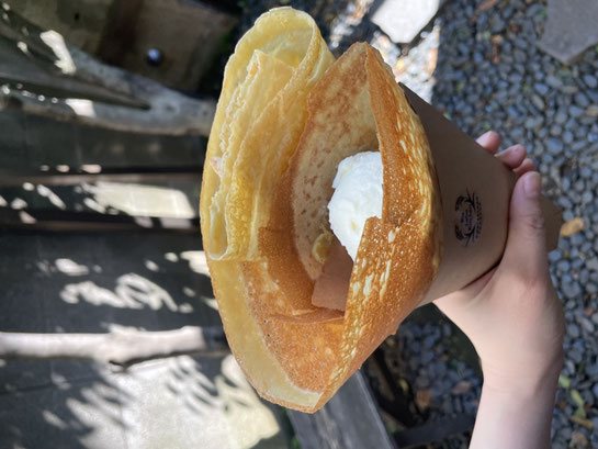 日本産のカルピスバターと、カソナードと素焚糖などのブラウンシュガーを使用。香ばしさと鴛海も聞いたシンプルなクレープ